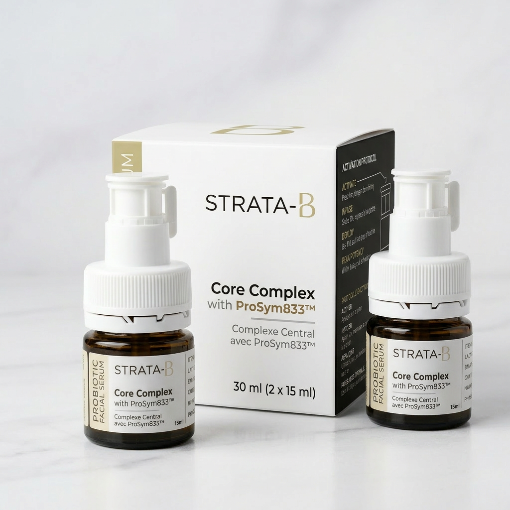 Each bottle delivers 8 billion CFU of live L. paracasei, protected by ProSym833™ at activation — a strain-specific system designed for meaningful, measurable interaction with the skin barrier over a defined period.